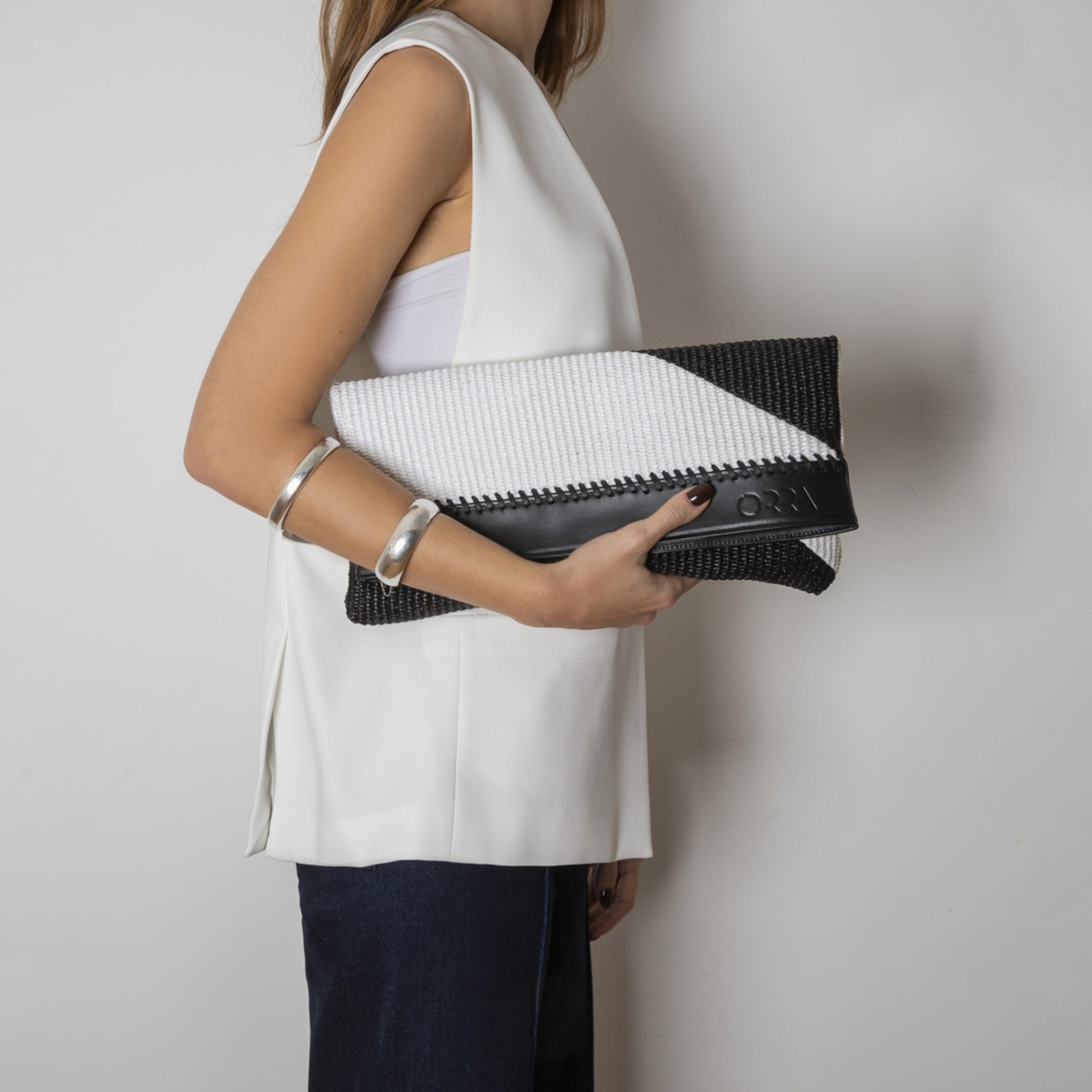 Georgianna Raffia White Black Rankinė