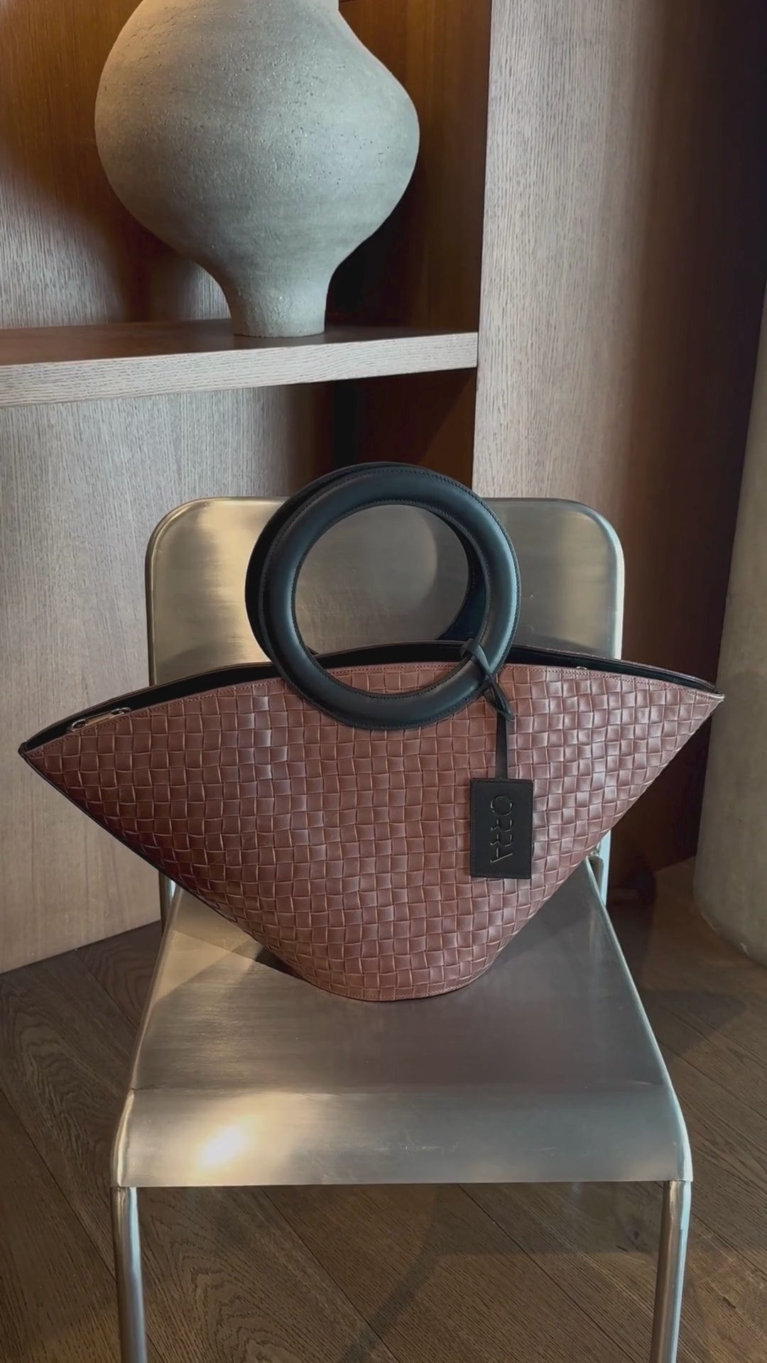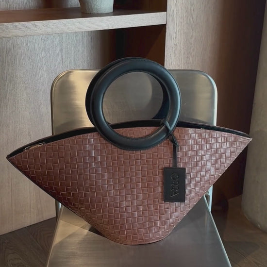 Exclusive model genuine leather handbag with braided pattern and round handles. Due to its size and capacity, it is perfect for both everyday use and trips. A great choice between functionality and style.