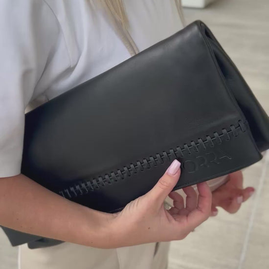 Anadiplosis Black Leather Handbag