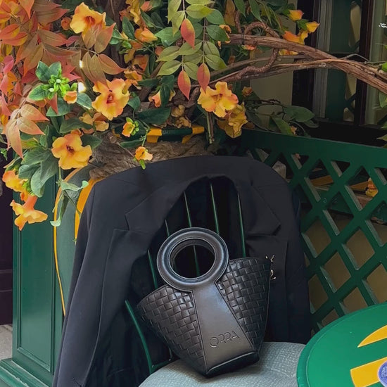 This handmade mini-sized leather handbag features a modern geometric shape and a delicate braided pattern. This handbag is not only stylish, but also unique - every detail is carefully handcrafted, emphasizing exclusivity and quality.